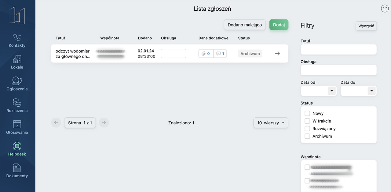 zgłosić usterkę lub awarię do odpowiedniej osoby oraz mieć podgląd na postęp prac nad jej usuwaniem za pośrednictwem funkcji Helpdesk